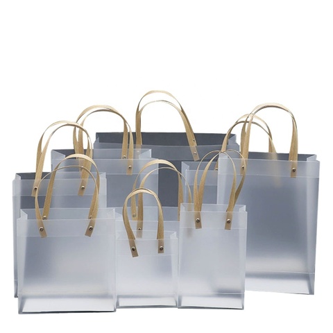 Bolso de PP de lujo transparente con asa, bolsa de plástico reutilizable con logotipo personalizado, para embalaje de compras, novedad de 2023