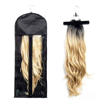 2025 Custom Reusable Zipper Wig Bag with Hook Eco-friendly Dustproof Wig Storage Bag With Window Accessories Packaging