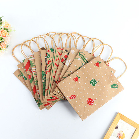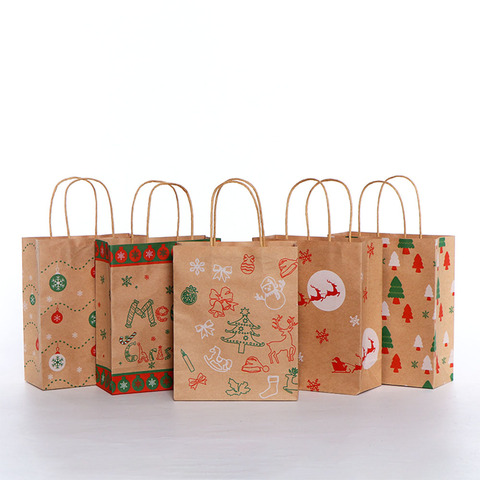 كيس ورق كرافت فاخر لعيد الميلاد مع مقبض حقيبة جميلة قابلة للطي لتغليف الهدايا طباعة مخصصة