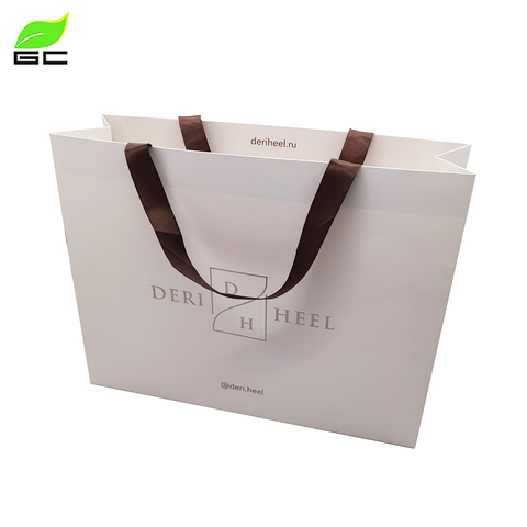 كيس ورقي أبيض من الورق المقوى مع شعار مخصص برباط للمعرض أو تغليف التسوق