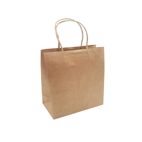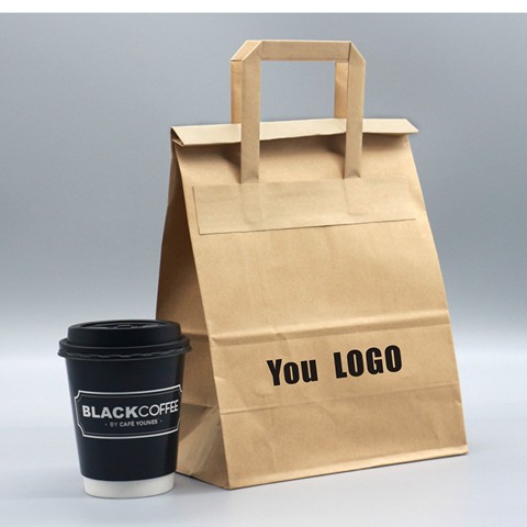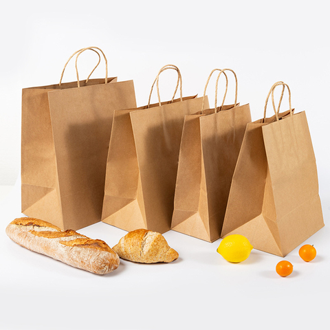 للبيع بالجملة حقيبة تسوق من ورق الكرافت بني مطبوع حسب الطلب بمقابض قابلة لإعادة الاستخدام لتعبئة المواد الغذائية والترويج