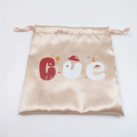 Sac à cordon en satin réutilisable imprimé personnalisé de luxe emballage cadeau en satin doux recyclable écologique pour bijoux ou pochette à perruque