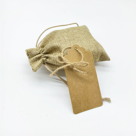 2025 Offre Spéciale étiquette suspendue personnalisée sac à cordon en lin sac d'emballage cadeau de qualité supérieure pour l'emballage de bijoux