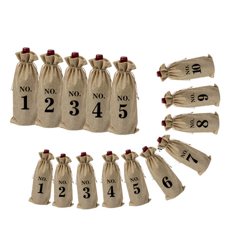 Çevre dostu dayanıklı jüt kumaş şarap ambalaj çanta İpli kapatma özel baskılı toptan jüt şarap çantası için parti