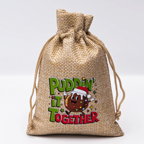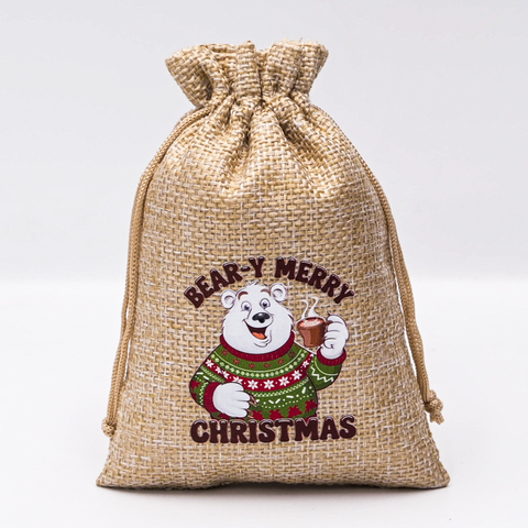 Noel hediyesi kese özel Logo çevre dostu küçük yeniden kullanılabilir jüt İpli çanta hediye veya şeker çerez için geri dönüştürülebilir ambalaj