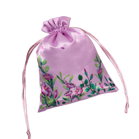 Lüks özel baskılı geri dönüşümlü saten büzgülü çanta yumuşak hediye ambalaj takı veya peruk kılıfı için