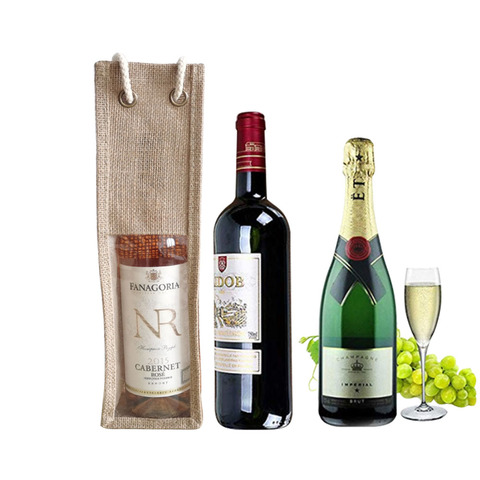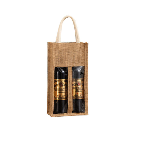 Bolsa de Yute Reciclable de Alta Calidad para Envasado de Vino con Ventana Transparente, Tamaño y Logotipo Personalizados