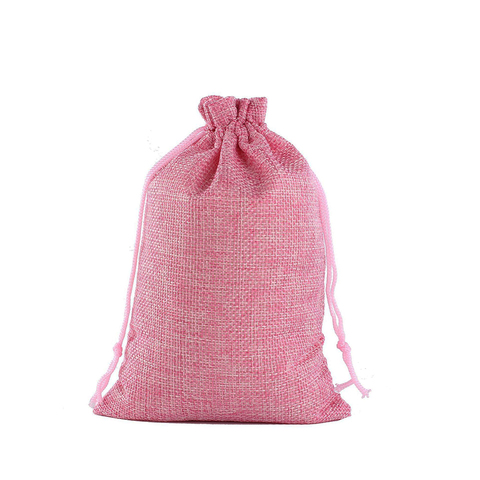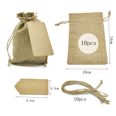 Bolsa de Yute de Alta Calidad con Cordón y Etiqueta Colgante, Impresa con Serigrafía, Bolsa de Regalo de Yute Reciclable para Empaque de Artículos Pequeños
