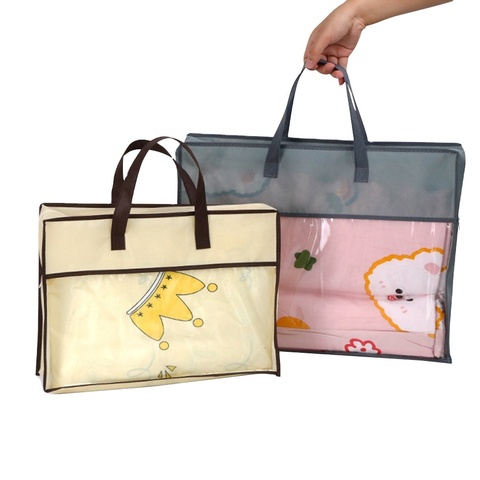Bán Buôn An Ninh Trong Suốt Màn Hình In Ấn Dây Kéo PVC Gối Túi Với Xử Lý Cho Chăn Không Dệt Tùy Chỉnh Kích Thước