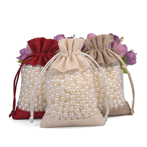 Biểu Tượng Tùy Chỉnh Kích Thước Khác Nhau Đay Organza Vật Liệu Đóng Gói Linen Túi Quà Tặng Với Dây Kéo Cửa Sổ Lưới Cho Mỹ Phẩm Hoặc Quà Tặng